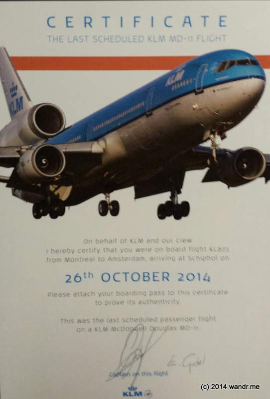 As I mentioned last Friday I made the decision to fly in to Montreal for the KLM MD-11 retirement flight. I probably should have made that choice much earlier but the award rates didn’t really change much and I had a blast. Lots of friends on board (several from the DC-10 final flight, the other major tri-jet to be retired this year) and plenty of new friends to be made. I posted a write-up from the flight itself over at AirwaysNews and I think it is worth a read, if only to get a feel for what the level of AvGeek-dom was like on board (hint: VERY high). There’s also a small photo gallery on the AirwaysNews Facebook page and some more photos at the end of this post.