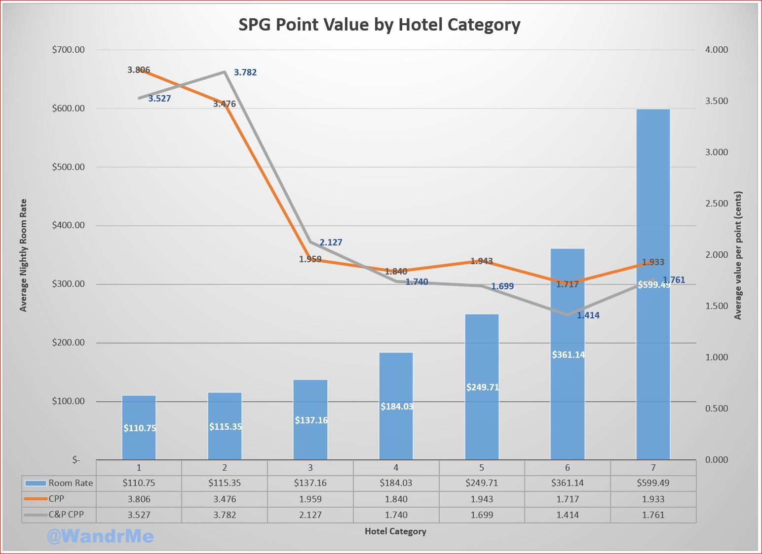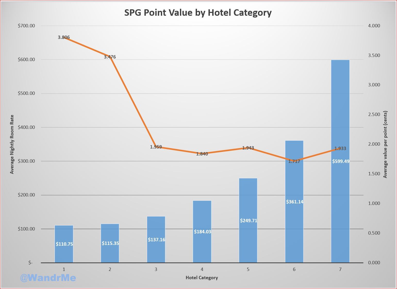 The data is quite counter to the typical story being told. The cheaper rooms are, on average, the best redemption values. By far.