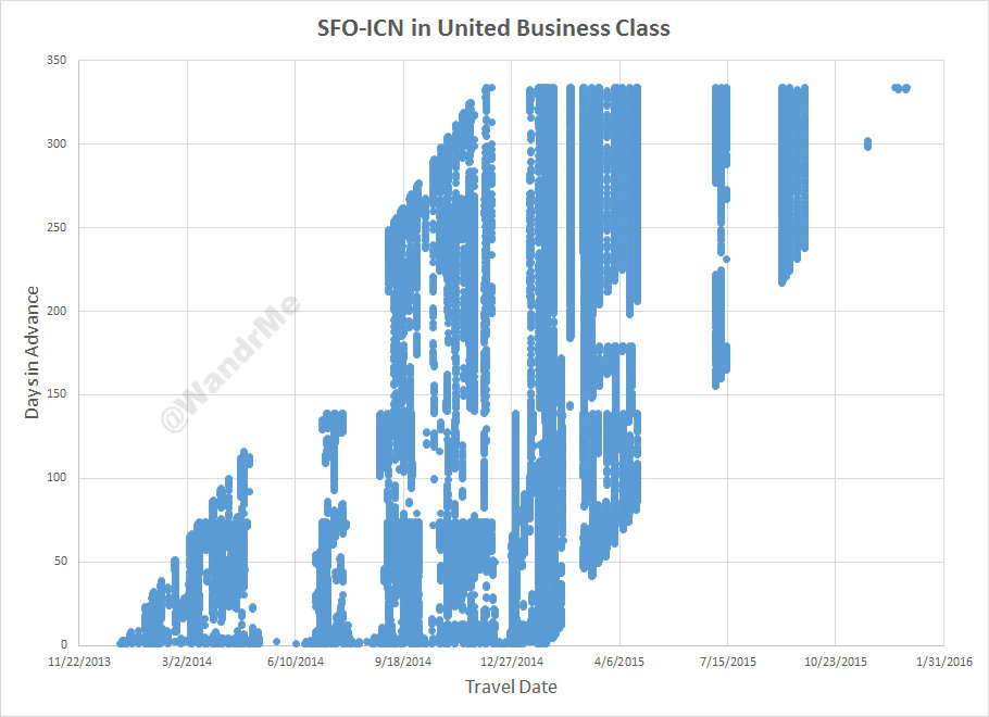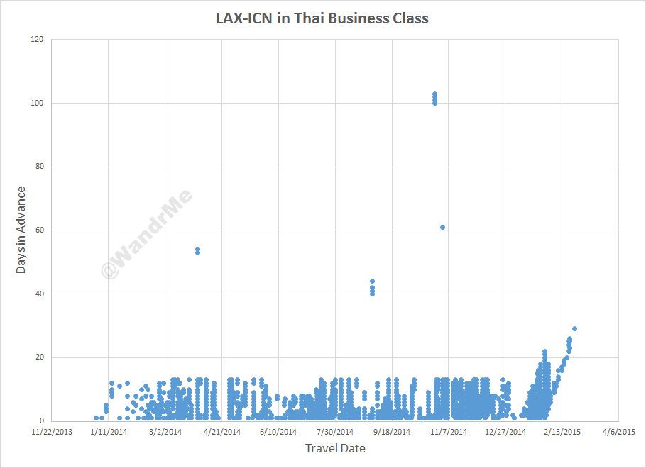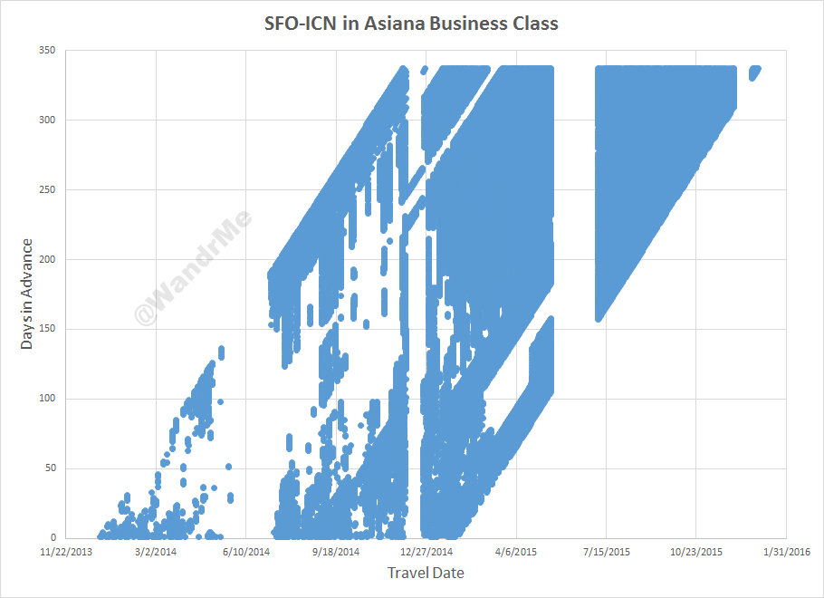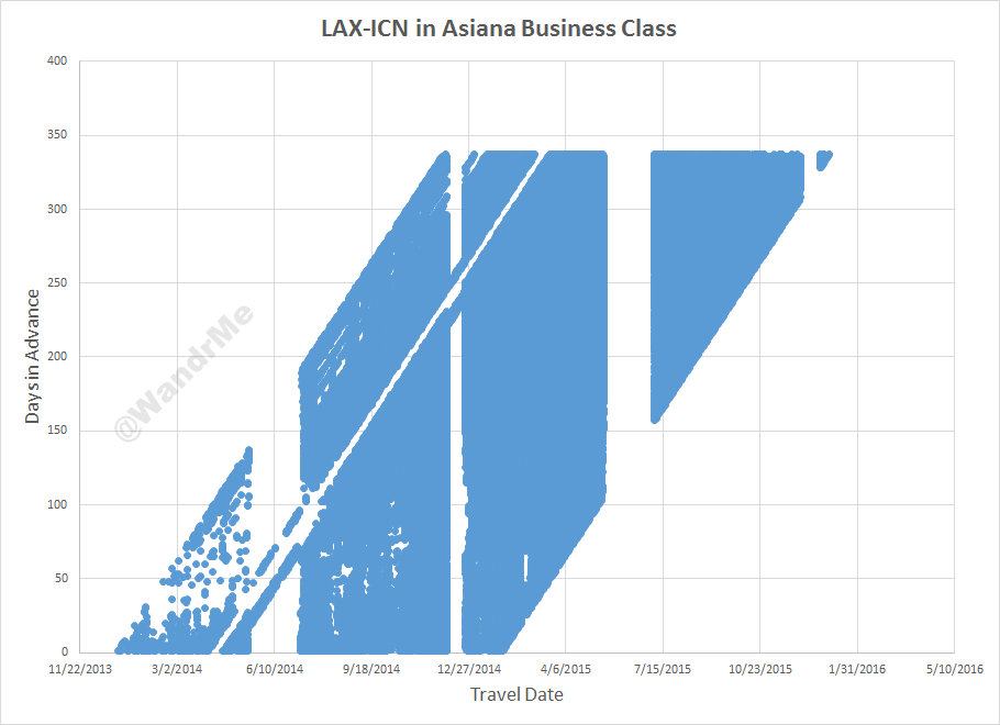Contrary to the Thai option Asiana is mostly wide open, though there are clearly defined blocks of times where no seats are made available. The lines in the charts are pretty clear in that regard.