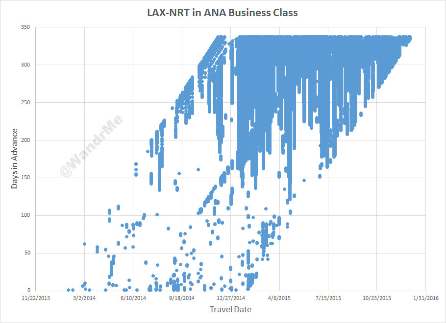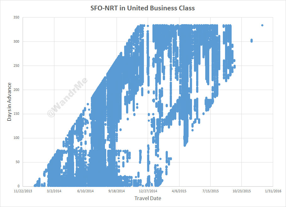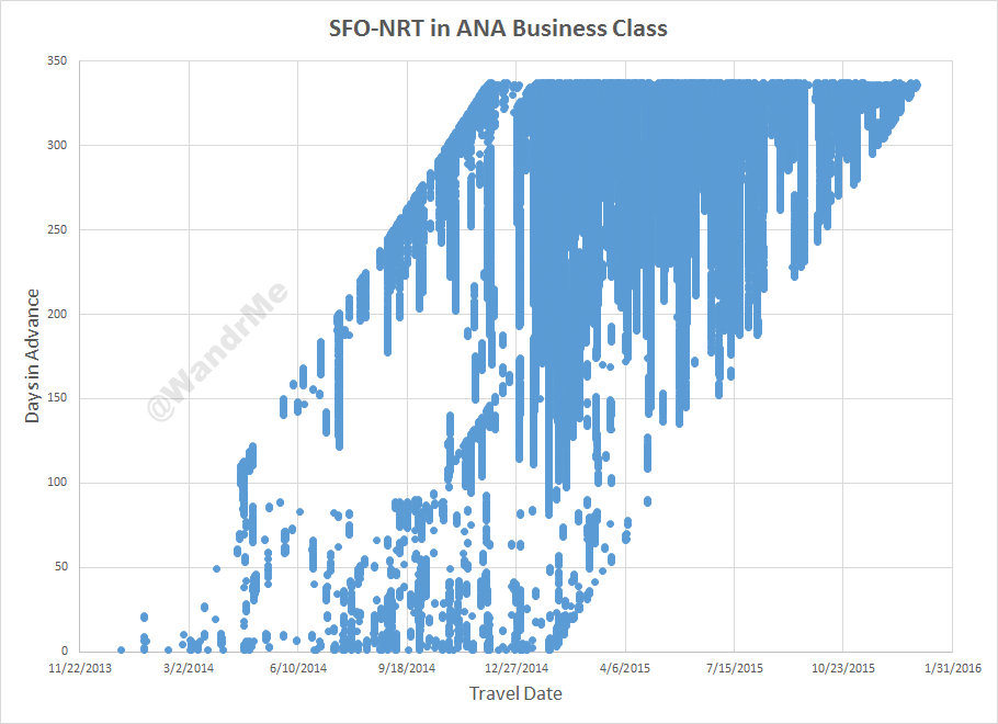 For Asiana and ANA the charts out of San Francisco look remarkably similar to those out of Los Angeles. Asiana has the relatively strict black-out dates and ANA has far more availability when the schedule opens than it does close in to departure.