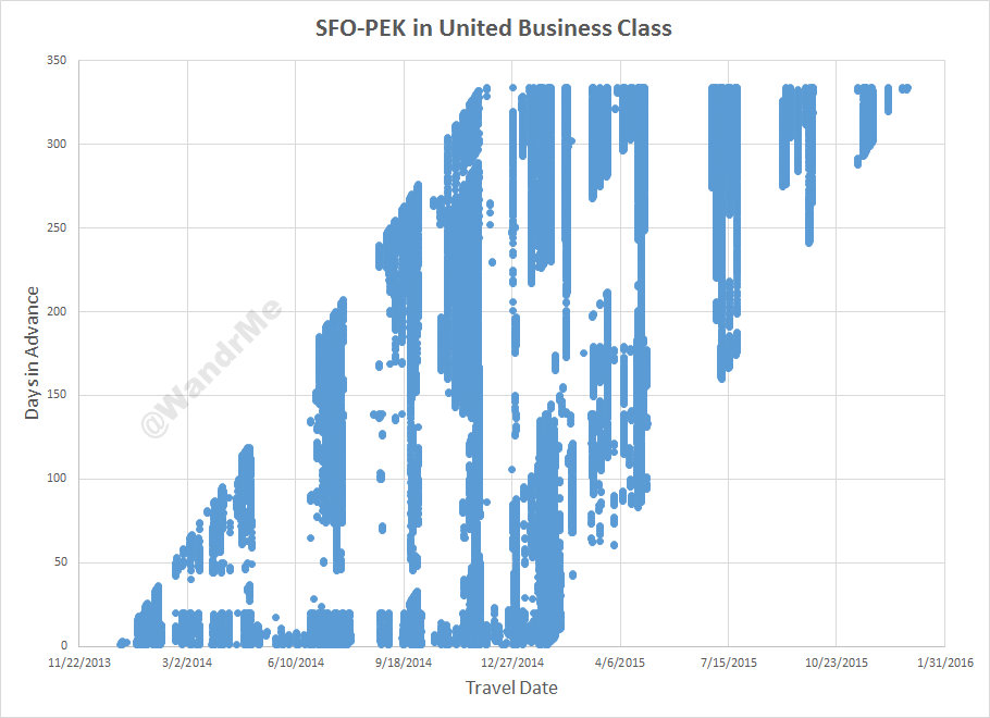 For the Beijing flights the close-in “magic number” appears to be more like 20 days, though in both cases there are plenty of examples where it doesn’t show such that depending on it for planning a trip would be a risky move.