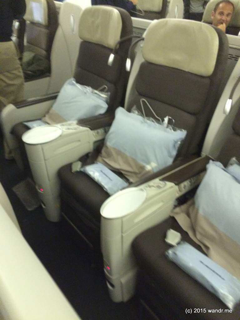Yup…I’m pretty sure we did. The PremE section was a single row behind EuroBiz and in front of the curtain. A bit crammed in with all 6 seats full and open seats in regular economy, but such is life. And the better catering was nice.