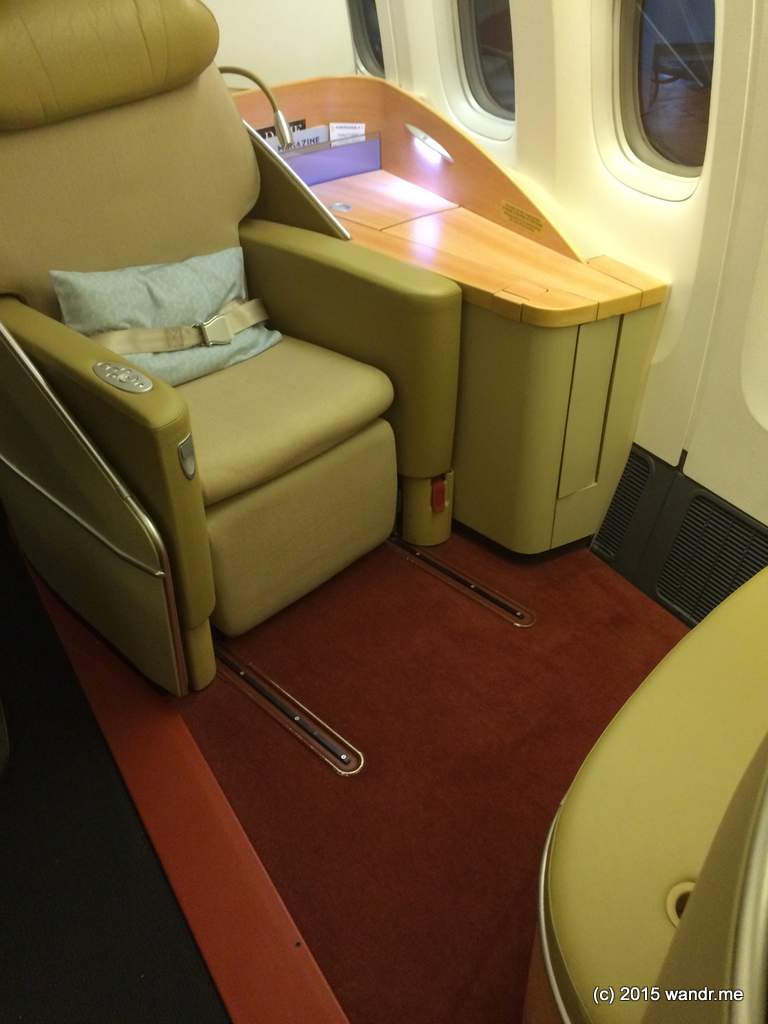 Departing JFK T1 during the evening bank of flights is nearly as bad as leaving T8 around the same time. I would not wish such experiences on any but my worst enemies and even then the Geneva Convention may come into play. Still, after ~40 minutes fighting with TSA lines I was in the sparse terminal (no lounge access for Premium Economy and no status for me) and shortly thereafter boarding commenced for the overnight flight. Boarding meant passing through the first class and business class cabins en route to my seat. During the check-in process upgrades to business were offered for ~$450. Seeing the product on board I’m very happy I didn’t pay the extra for such.
