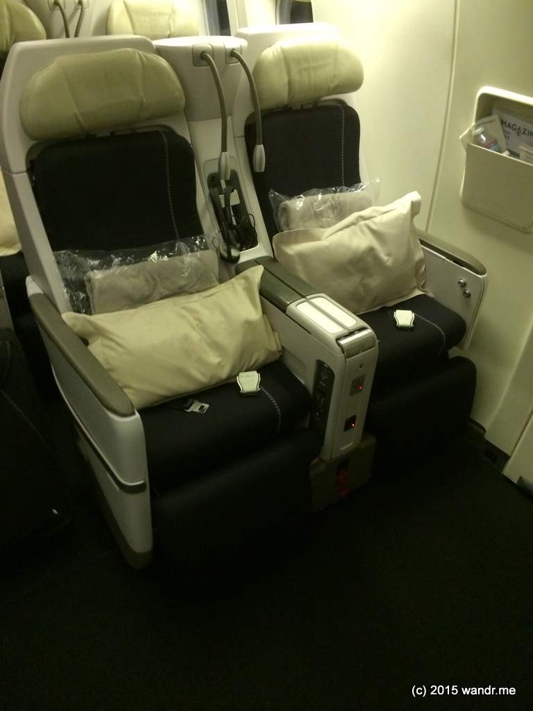 I was warned that the seats weren’t especially comfortable nor spacious. And I suppose that’s true (though the first row has plenty of legroom). The hard shell articulating seat means losing a bit of legroom as you recline but also no one reclining in to your personal space. I still fit in OK when fully reclined and it was a decent enough position that I was comfy. And it is significantly more space than the regular economy seat offers. That makes a difference for a comfy night’s sleep, or whatever approximates such on a TATL redeye flight.