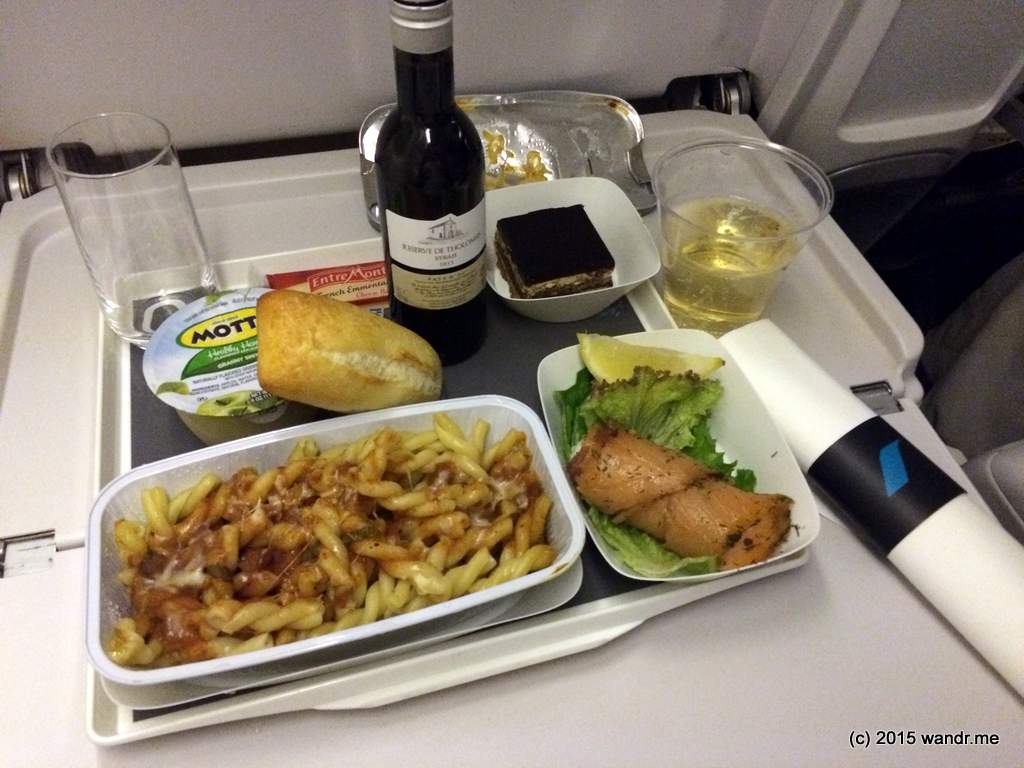 The first meal does look like a regular economy meal. In comparison, on BA’s transatlantic Premium Economy (World Traveller Plus), the main courses actually come off the business class menu and is served in a ceramic dish, with the remainder of the tray being the same as regular economy. (The pre-arrival meal/snack is the same as economy as well.)