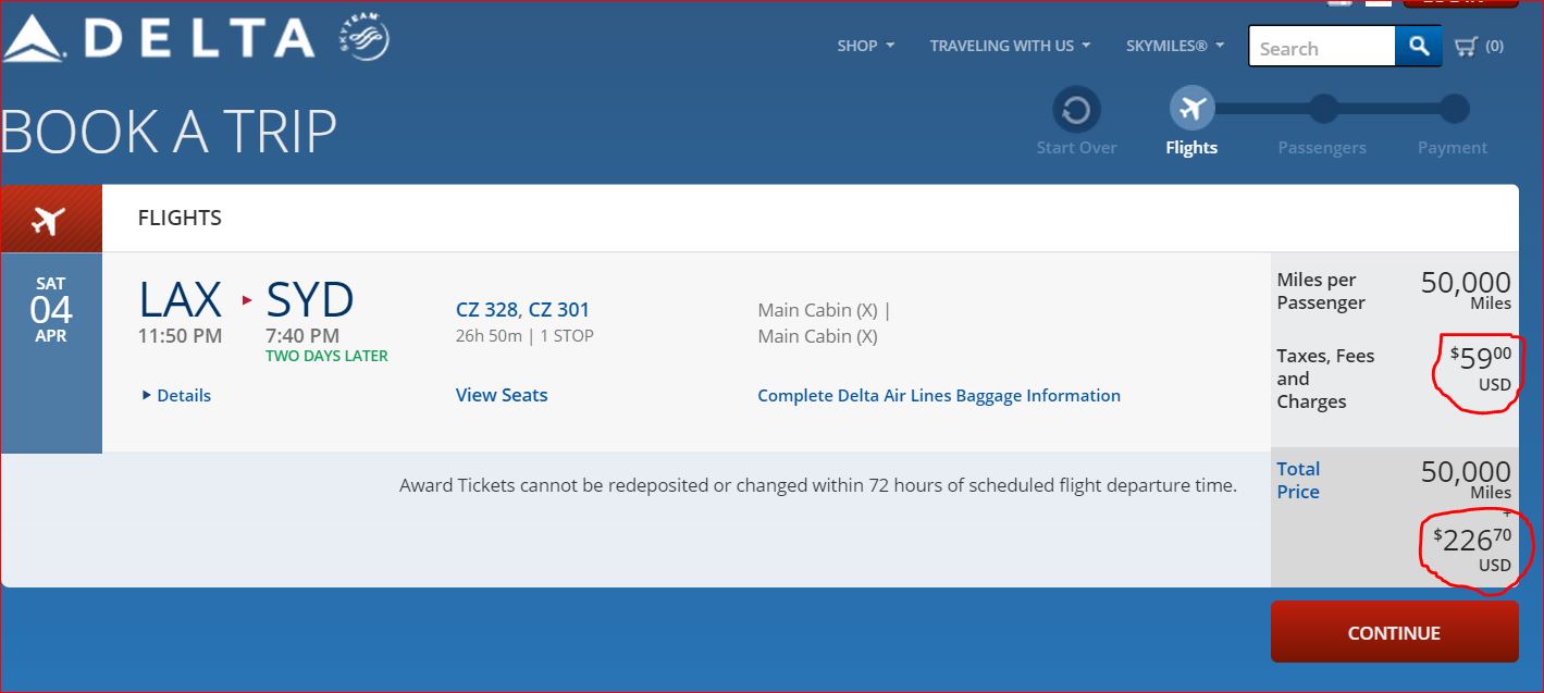 And, for reasons which I do not comprehend and which the Delta twitter team has not yet been able to explain, travel on China Southern seems to be drawing a mysterious extra $167.70 in fees. Oops. (Appears to be YQ + YR; I thought that didn’t get charged for US origination tix??)