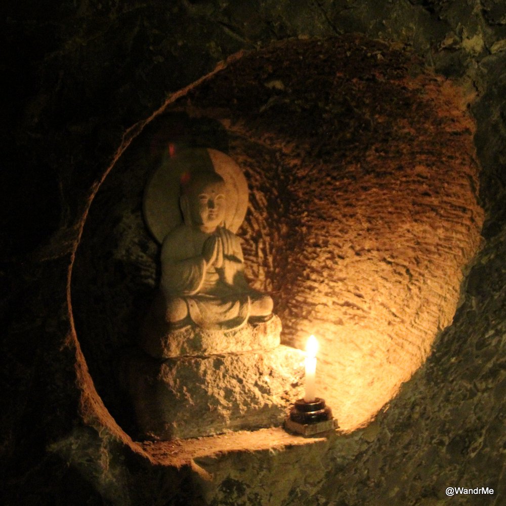 Also at Hasedera is the Benten-kutsu Cave. This is a small (very, in some places) stone cave with a number of icons resting in cut outs around the sides. Most are lit by candles, casting a soft glow over the entire cave and creating a spectacular scene.