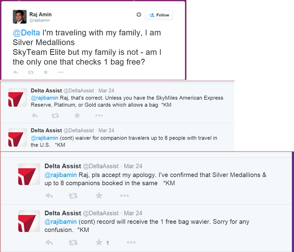 Delta replied in less than 10 minutes with bad info