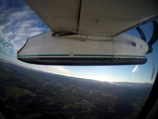 It was a beautiful, sunny day and the Q400 flies relatively low, typically around 20-22,000 feet rather than 30,000+ in a jet. Yes, it is a bit louder. But I have ear plugs. The drinks are free and the views are spectacular.