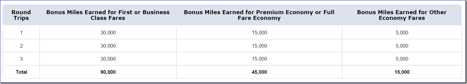 - 5,000 bonus award miles for segments flown in fare classes J, C, D, Z and P.