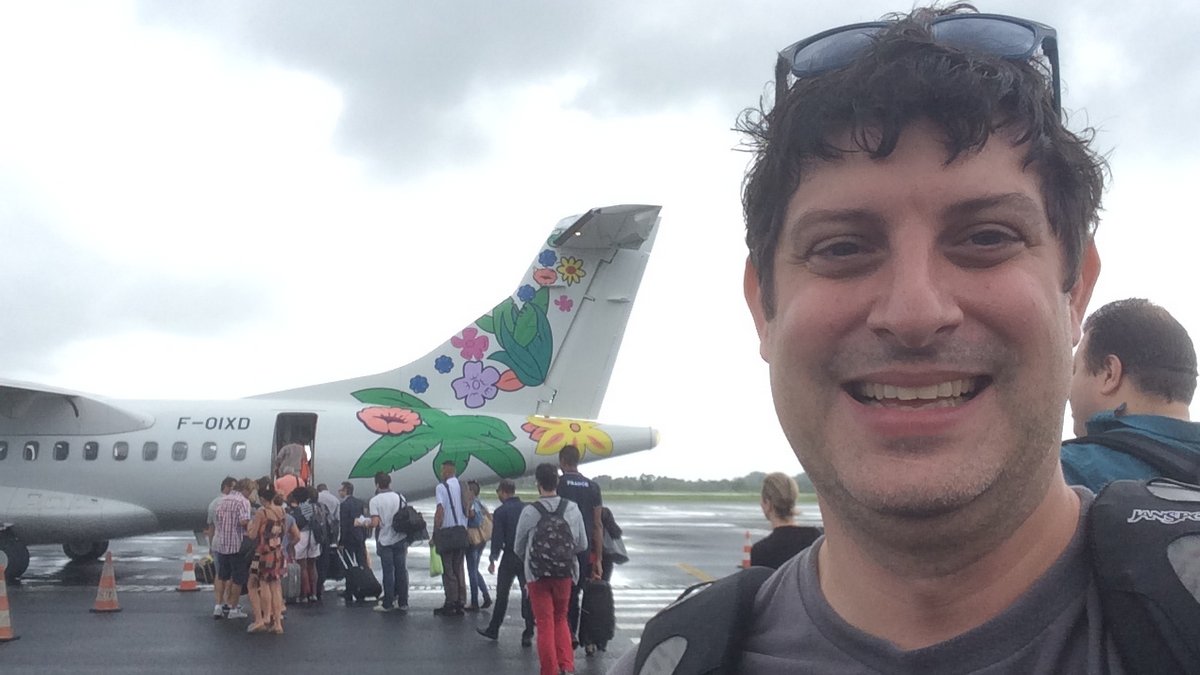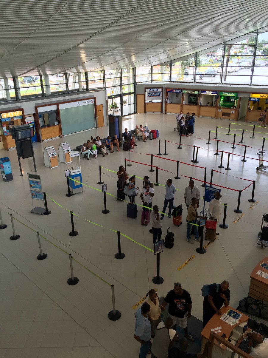 On this particular day, however, it was our destination on Air Antilles via Guadeloupe. Check-in at Martinique for the local flight was quick and easy; the airport gets a few big flights but for the 50 seats on Air Antilles’ ATR-42 there’s just not much going on. That meant a quick immigration and security screening (though Pizza got waylaid significantly at security) and then in to the spacious, empty terminal to await our flight. Boarding was only a few minutes delayed – early by island time standards – and soon we were walking out on to the apron and over to our colorful plane.
