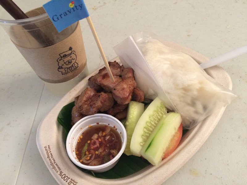 The space is adjacent to a more traditional Bangkok market area, they alleyway extending from the main road to the waterfront where the ferry runs back and forth. That is the old version of Bangkok, a little dingy with cracked plastic chairs at the food stalls and imported goods – from fashion to toys to cosmetics – sold cheap, looking to make a little profit on the volume. A quarter chicken meal might set you back 50 baht (including a bottle of water) at the old market; a honey lime soda icee costs more than that in the Jam Factory; both were delicious. Everything is 2-3x more expensive inside, which I suppose comes with the territory; someone has to pay for providing that infrastructure, keeping the art exhibits fresh and the lights on inside. No doubt the costs are higher.