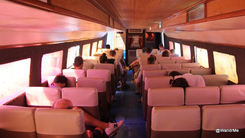 The boat departs relatively early and, unlike the buses, there is but one a day. We booked in advance (~$35/person) through our hotel and made our way to the dock for the departure after wolfing down half a breakfast; the early departure is especially early when jetlagged and the hotel breakfast doesn’t open early enough. We checked in quickly and headed down the ramp to the boat to discover we were some of the last passengers to arrive for the day’s ride. This gave us few options for seating – most the outdoor spots were taken and those same passengers had stuff on seats inside as well. We ended up sitting near the back inside and standing when outside, frequently shifting between the two locations to minimize sunburn potential on the first full day of our trip. Not ideal, perhaps, but also not awful.