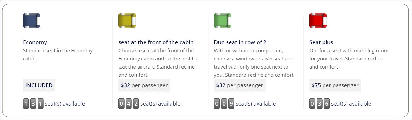 For reasons I cannot quite figure out the first three rows of economy are in a 2-4-2 layout rather than the typical 3-4-3. These are in the same zone as the four rows of business class between the two forward doors. On the more typical 777-200 with the new seats there would be three row of business class in the same space so presumably the pitch on these seats is very generous. Air France does charge extra for the seats, calling them either “Seat Plus” or “Seat at the Front of the Cabin” for upsale, but doesn’t mention the difference in layout otherwise.