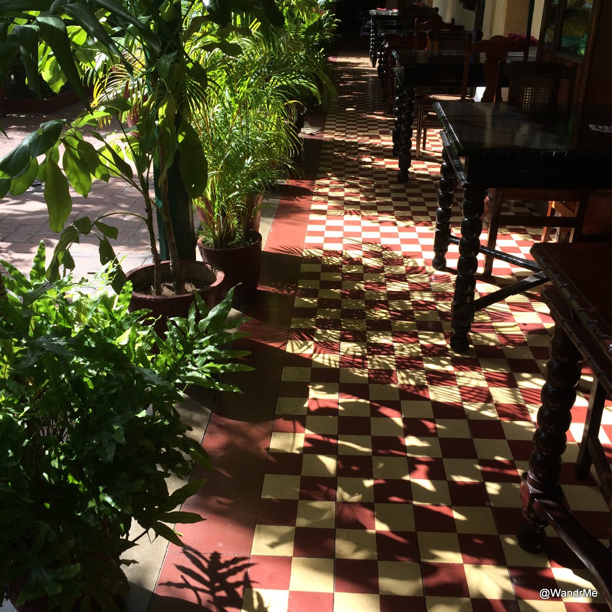 The public areas are a mix of dappled sunlight on tile floors and a rag-tag collection of stuff most generously described as “junkyard chic.” It transported us back in time, like walking through the long forgotten back room of an antiques store, with piles of things likely broken but that no one could bear to clear out. Quaint and quirky.