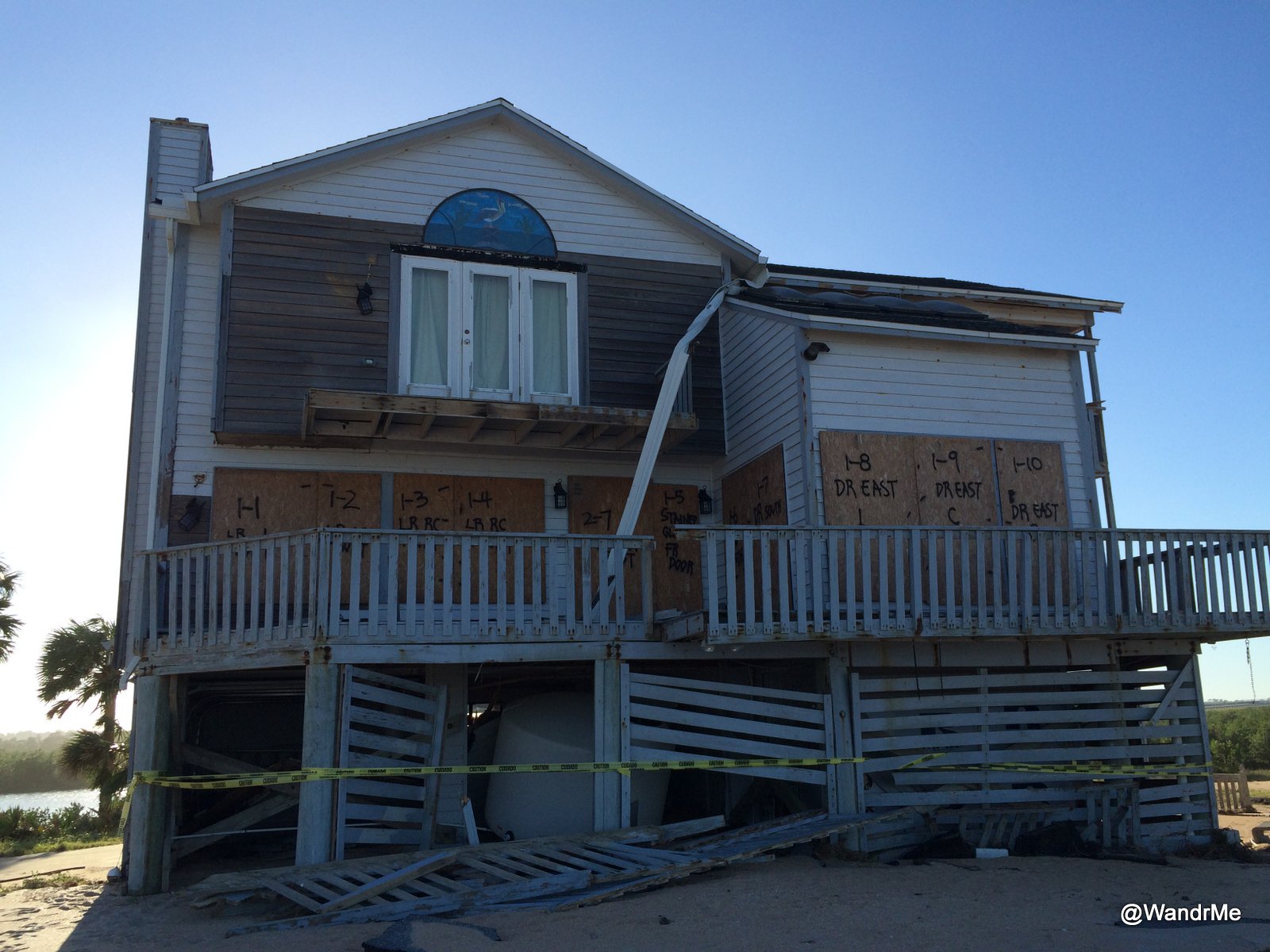 Access to the intercoastal side of the island is somewhat restricted through neighborhoods and communities but I know of a few areas that were generally open. Dondaville Road is home to Saltwater Cowboy’s, a waterfront restaurant sitting out on the intercoastal. The situation there is not particularly optimistic. There was obvious storm surge and water damage visible outside the restaurant. It remains to be seen just how well the interior survived.