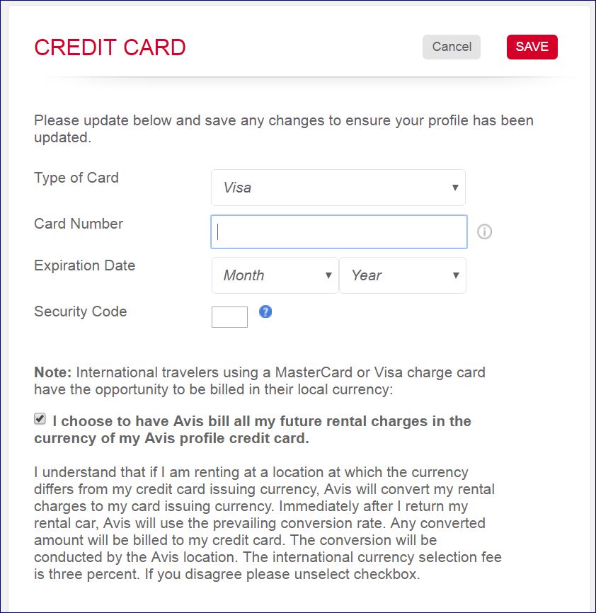 I choose to have Avis bill all my future rental charges in the currency of my Avis profile credit card.