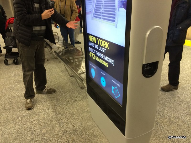 The USB charging points are a great example. We spotted 2 USB plugs on a single sign on the 96th Street platform. The sign is adjacent to benches. The plugs are on the side away from the benches rather than being in a place where a rider can sit and recharge a device.