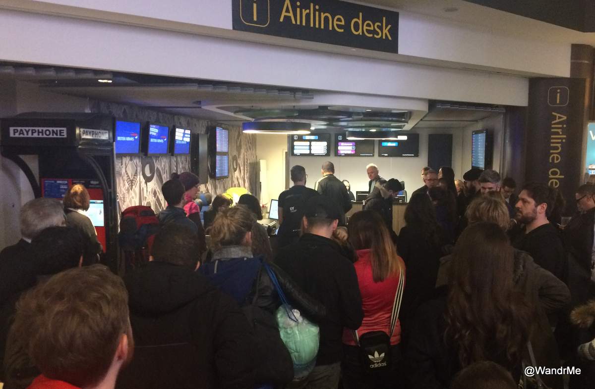 Gatwick loves its central shopping and dining area, holding crowds of passengers in the center of the terminal until just under an hour from departure. No relaxing at the gate and finding a quiet corner is a challenge. By the time I made it over to the announced gate for my flight the inbound aircraft was just arriving and boarding had commenced, with “boarded” passengers moving from one side of the waiting area to the other, crowding in to a small staging area between the counter and the entrance to the jet bridge. That was also when I noticed a few officers standing in the cab of the jet bridge as it positioned to meet the flight; something was amiss. As more and more outbound passengers crowded into the standing area the security officers appeared upstairs with their suspect. That they chose to handle the interrogation in that space, blocking our access to the aircraft, proved to be a critical aspect of our flight cancelling.