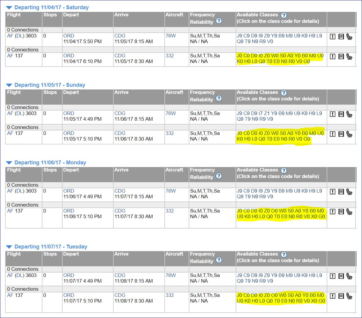 Bizarrely, the flights on Delta metal are still for sale while the Air France flights are not. The A330 is loaded in schedules but no inventory is open on it for purchase yet. The Delta-operate flights remain on sale for the same dates and approximate times. Presumably the Delta-operated tickets will be converted 1:1 over to Air France operated, hence only selling one of the two, but the implementation of this transition is one of the more strange JV ticket sale transitions I’ve seen in practice.
