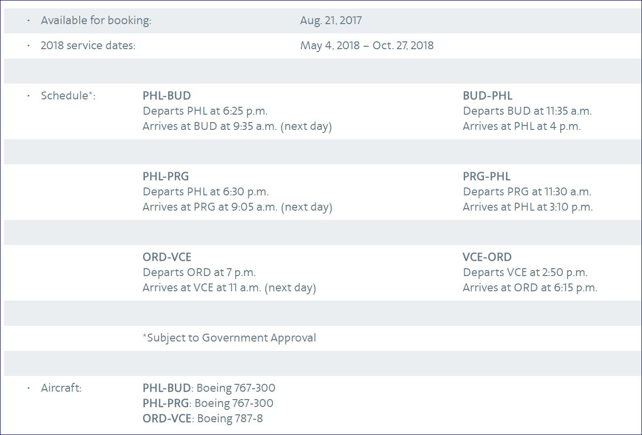 All three routes will operate with limited competition, something that should improve the chances of profitable operations. Budapest has no non-stop service to the United States today while Prague has only a Delta flight to JFK, a year-round service but less than daily in the winter season. Venice has service to the New York City area from both Delta and United Airlines but it is seasonal on both carriers.