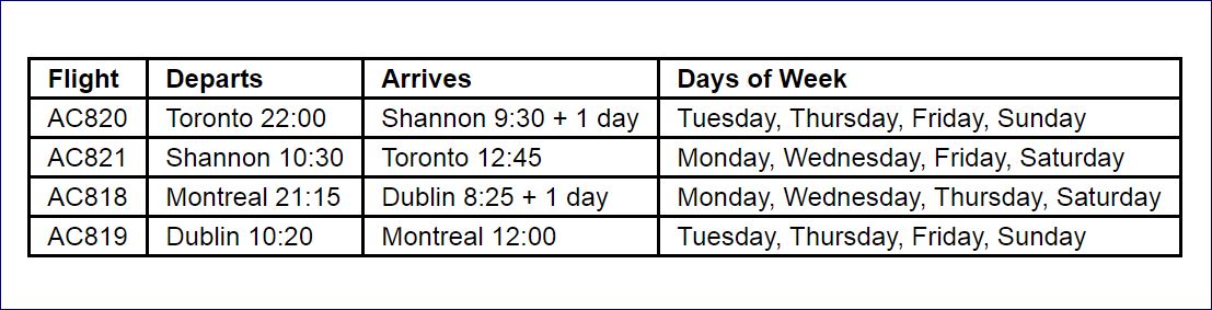 Air Canada to Ireland