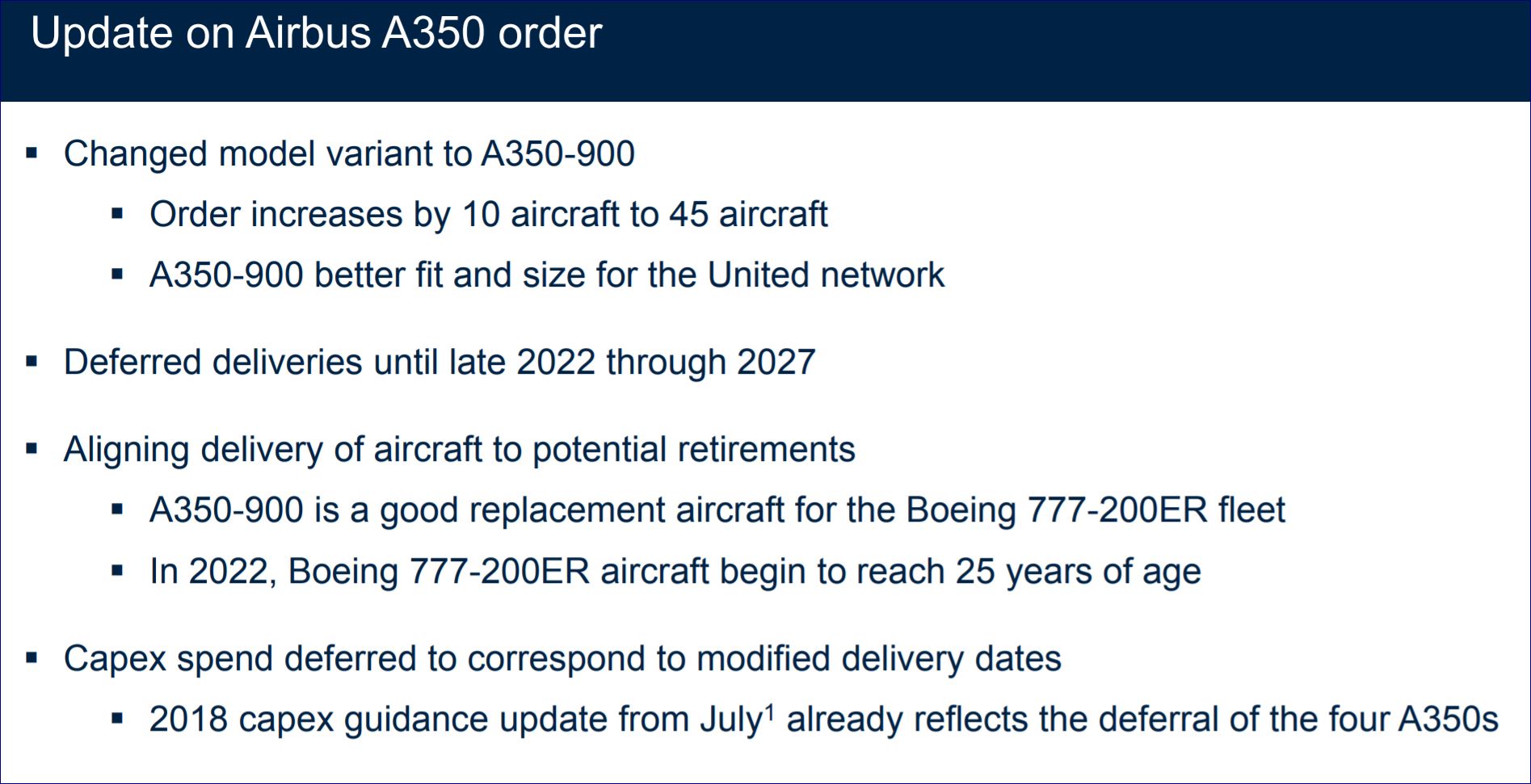 With the –900 model United gets a frame that matches the capacity and range of its 772s better than most of the Boeing options available. There are also the 787-10 frames on order, of course, but the A350-900s help balance the overall fleet growth.