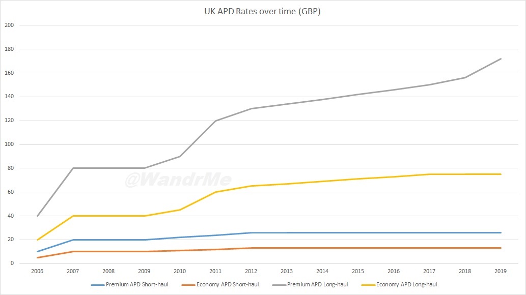 On the plus side, as noted above, the vast majority of travelers will not see an impact from the revised APD. Some back-of-napkin math suggests that less than 10% of passengers who depart from a UK airport are paying the premium APD due to either flying in economy class or on a connecting itinerary. And for those passengers the freeze on APD in 2019 is good news, though not as good as the oft-debated cutting of the tax would be.