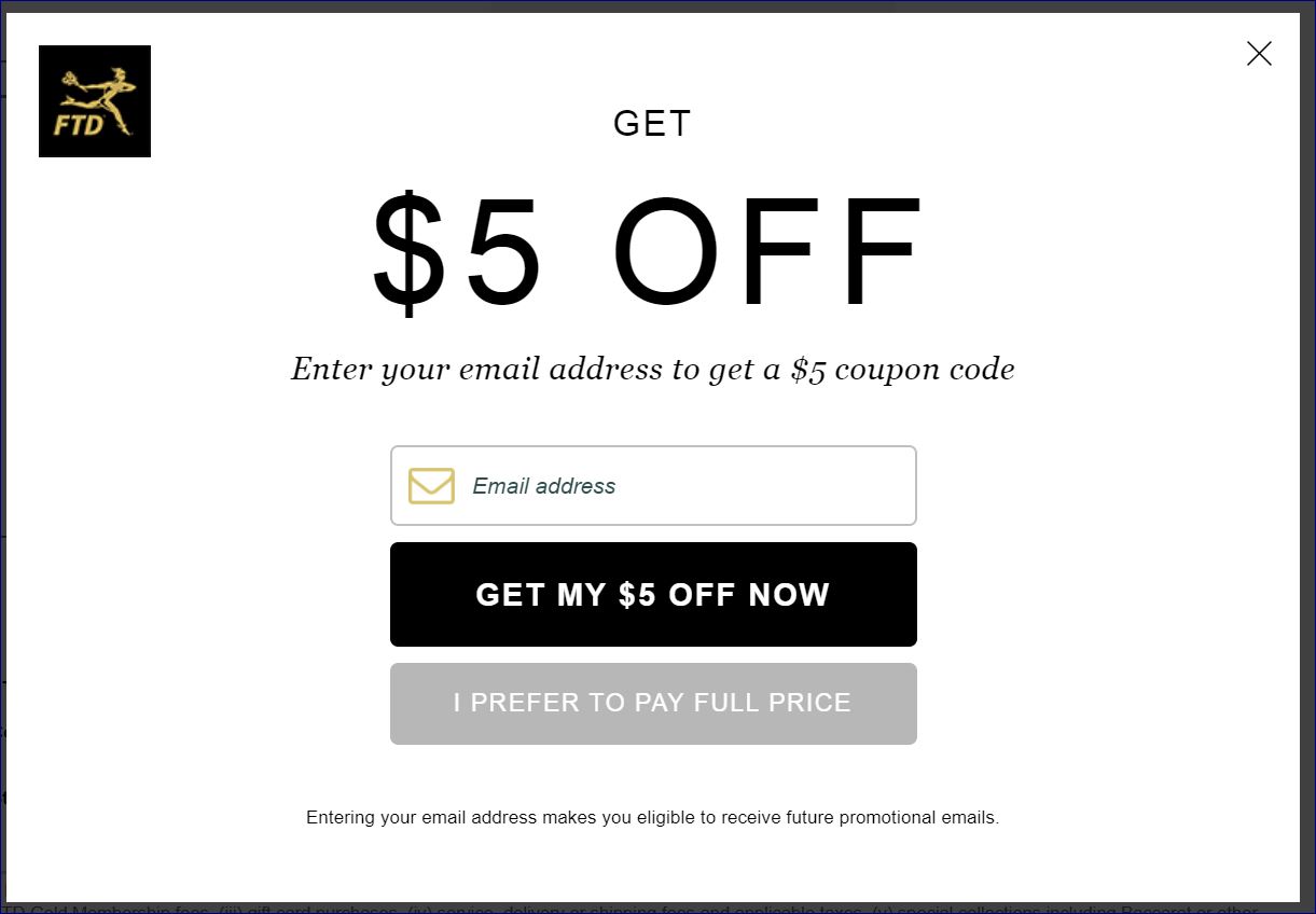 Added bonus of the generic version of the site is there’s an offer for a $5 coupon if you sign up for the FTD email list; no such offer on the branded version of the site.