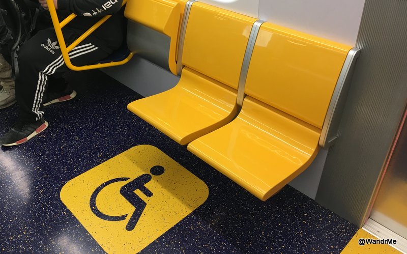 Wider doors are a nice upgrade, making it easier to get in and out of the cars. The poles in the center have a loop in them which means more hands can grab on. It also means more challenges for the performers at “show time” on the trains, though I’m certain those guys will adapt. They always do.