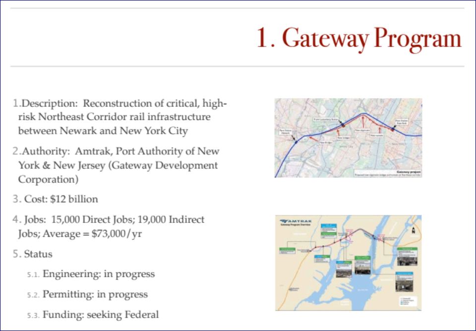 The Gateway Tunnel project is the TOP priority on the list, Jeffrey. That’s what makes this so stupid. It is not about making sure that the work gets done. It is about petty politicking.