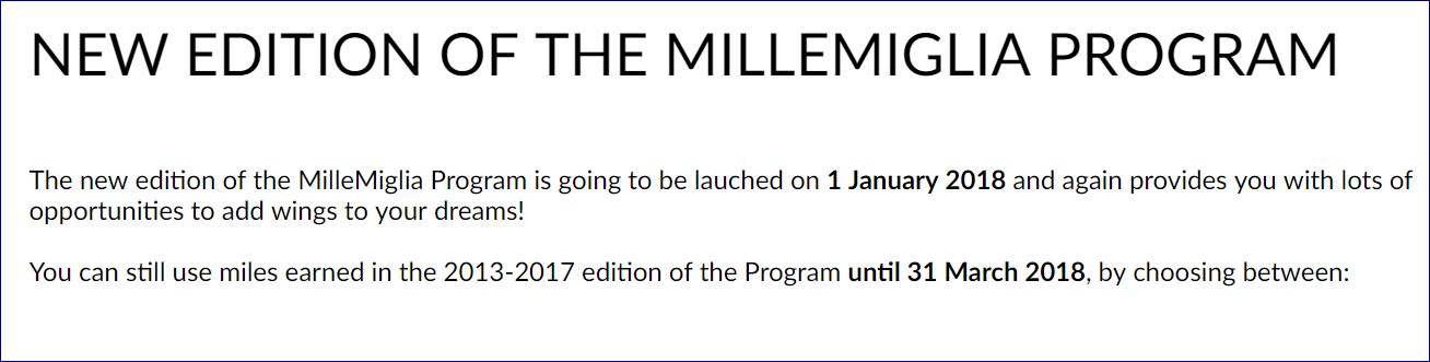 Every couple years Alitalia’s program expires and a new version is established. This isn’t individual member points expiring but a “new edition” of the whole program being rolled out. It is a pain for members and moderately ridiculous in general. And as the changeover happens the website gets updated. And things go (apparently) wrong.