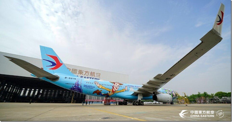 China Eastern joined the cartoon livery club earlier this month. The carrier painted one of its A330 aircraft (B-5976) with a Toy Story theme featuring a giant Buzz Lightyear on the fuselage. The paint job is a joint marketing effort with Disneyland Shanghai.