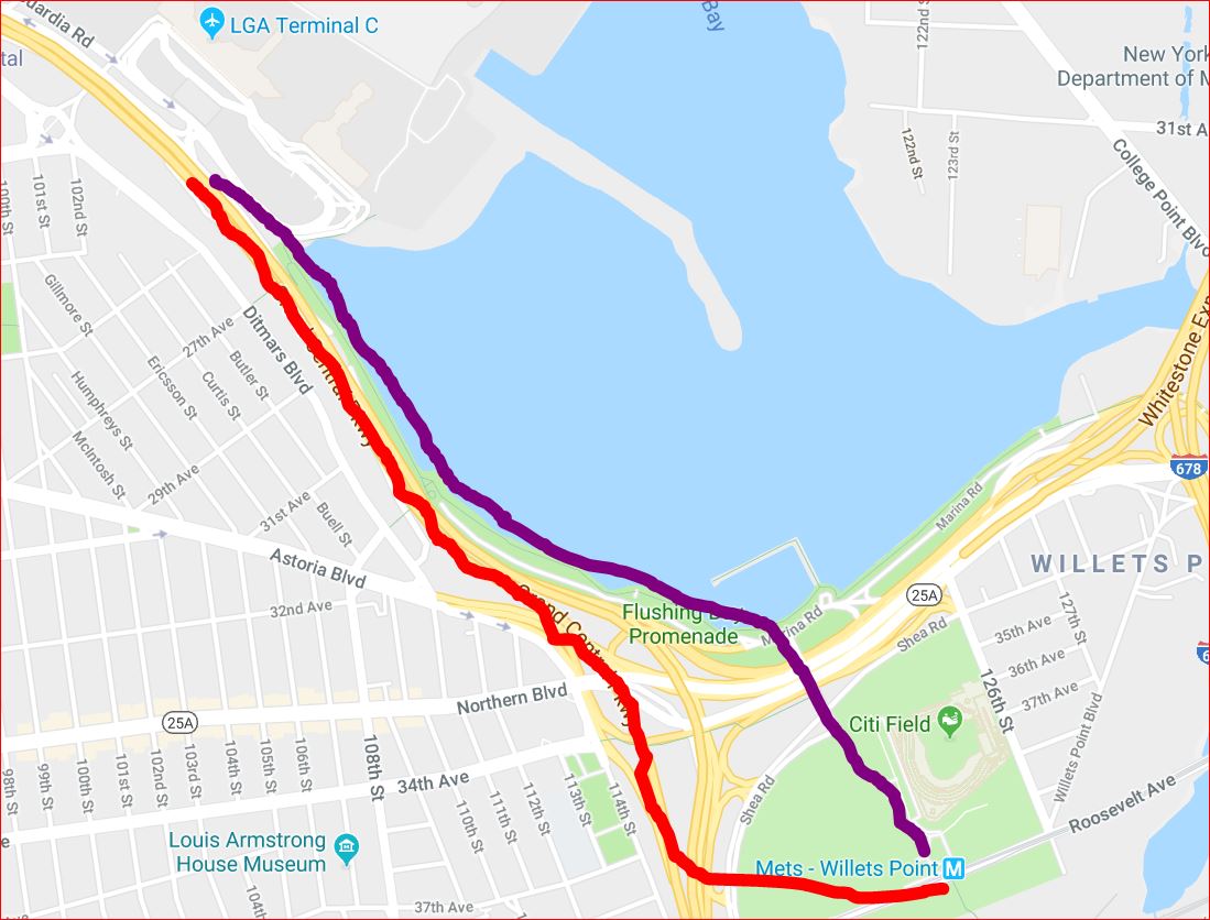 The plan for rail service to LaGuardia Airport took a major hit last week. The, proposed in 2015, will no longer be built above the Grand Central Parkway, connecting the airport and Willets Point in Queens. Residents in East Elmhurst scored a victory in getting state officials to agree that the path was sufficiently detrimental to their quality of life. Two remaining options for a track routing exist. It could run along the Flushing Bay Promenade or out over the water of Flushing Bay.