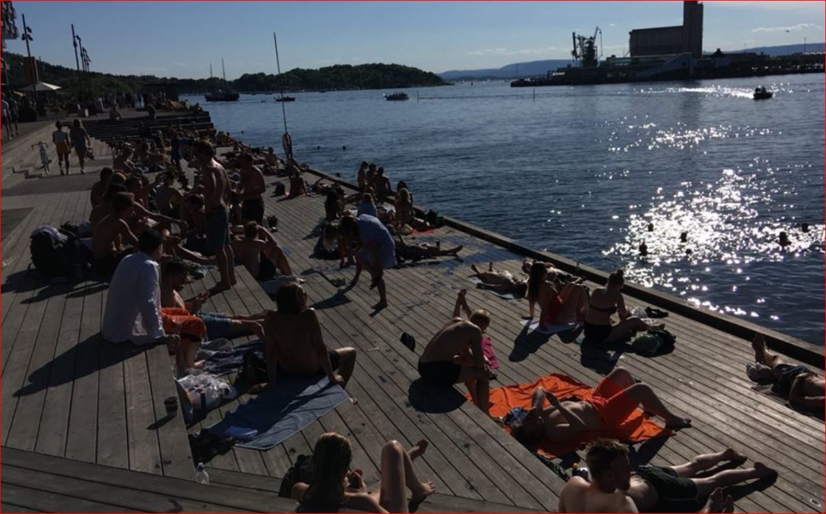 With the short layover in Oslo I didn’t plan much in the way of touristing. I need to catch up on some sleep and some work and I figured I could use the top of the opera house as an office for the afternoon. From that vantage point I saw an urban beach just a bit further along the harbor. Plans changed and I headed over to sun and relax (and work) amongst the crowd. I quickly began to regret not having a bathing suit on. Everyone around me seemed to be enjoying the refreshing plunge off the dock. I wanted that, too.